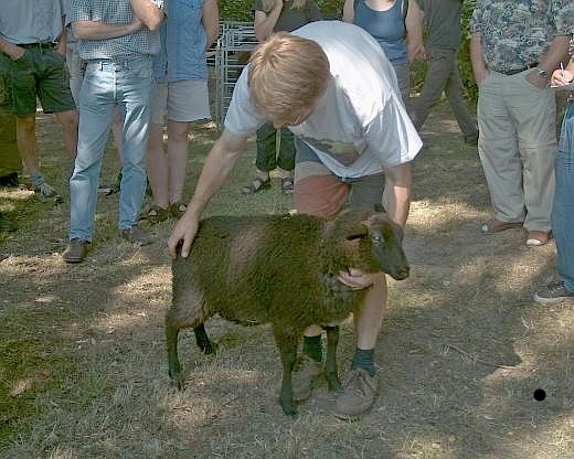 war das Urteil durch R. v. Stärk, dem Preisrichter über die "Pommern" in Niedersachsen. Mittelmäßigkeit wurde nicht belohnt. Ein tiefer Blick in die Wolle:"Wollen Sie sich das wirklich antun? Tun Sie es lieber nicht!" Auf diese Weise ist ein nicht geringer Anteil an Lämmern nicht in den Genuss der rechten Ohrmarke gekommen. Bei 87 gemeldeten Tieren aus insgesamt 8 Zuchtbetrieben, konnte man sich erlauben, stark zu selektieren. Sicherlich der richtige Weg, den qualitativen Anschluss an das Hauptzuchtgebiet in Mecklenburg-Vorpommern nicht zu verlieren.